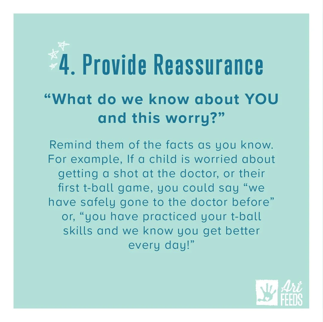 Remind them of the facts as you know. For example, if a child is worried about getting a shot at the doctor, or their first t-ball game, you could say, “We have safely gone to the doctor before,” or, “You have practiced your t-ball skills and we know you get better everyday!”